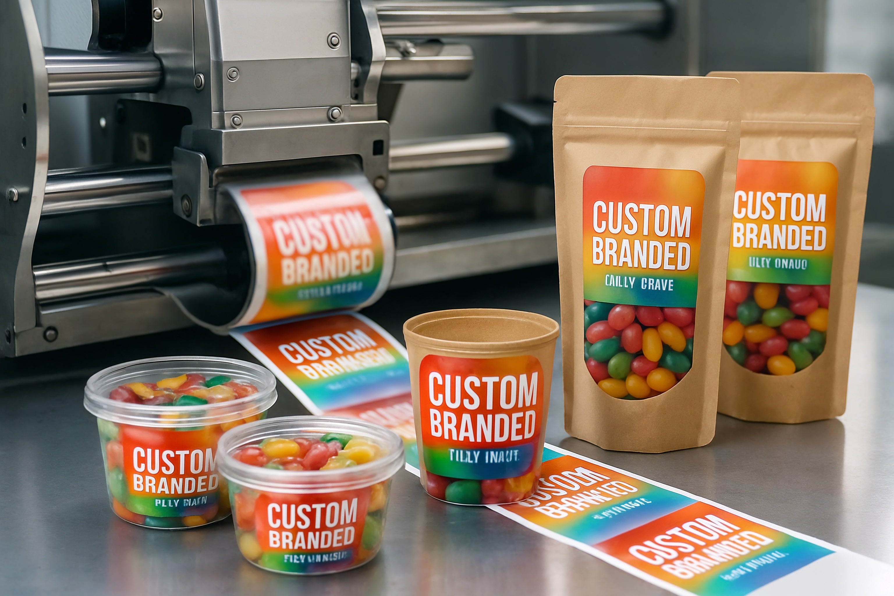 - Printed Packaging Sweets – Your logo and design on tubs, pouches, or boxes.